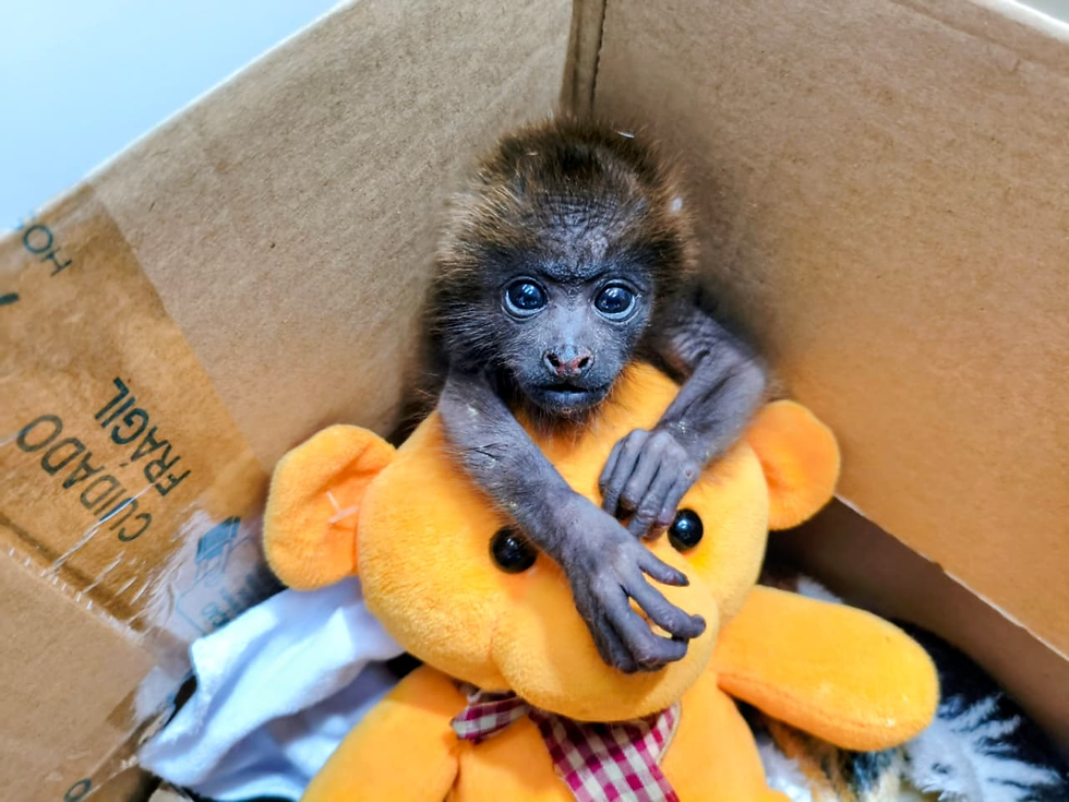 Filhote de bugio é resgatado após morte da mãe e recebe cuidados em Cachoeira do Sul