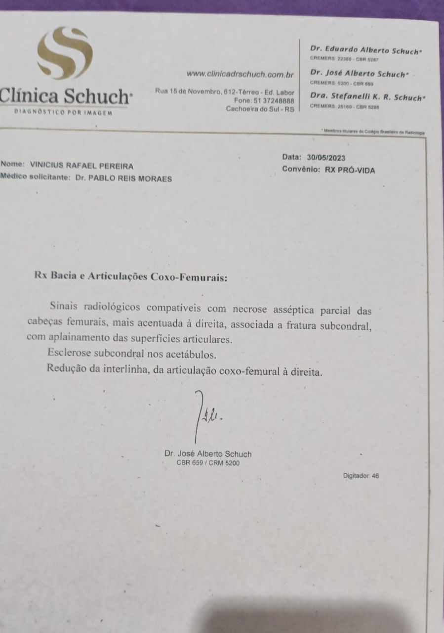 O pedreiro Vinícius Rafael Pereira, de 37 anos, enfrenta um grave problema de desgaste no quadril há quase três anos, necessitando de uma cirurgia para a colocação de próteses em ambos os lados. No início deste ano, ele conseguiu realizar a primeira cirurgia, mas ainda precisa da segunda para recuperar sua qualidade de vida.