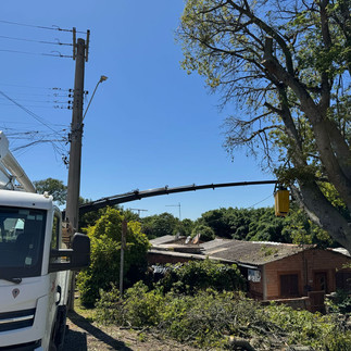 Nesta sexta-feira, 7 de março, uma atividade em conjunto da RGE e Prefeitura Municipal resultou na remoção de uma árvore de grande porte que estava sendo projetada sobre a rede elétrica na Rua 15 de Novembro, esquina com a Rua Tiradentes, no Centro de Cachoeira do Sul.